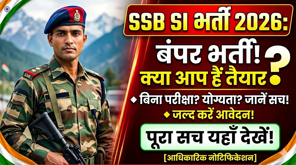SSB SI Recruitment 2026: अगर आप वर्दी पहनने और देश की सीमाओं की सुरक्षा करने का सपना देखते हैं, तो सशस्त्र सीमा बल (SSB) आपके लिए एक शानदार मौका लेकर आया है। SSB ने सब-इन्स्पेक्टर (SI) के विभिन्न पदों के लिए आधिकारिक नोटिफिकेशन जारी कर दिया है।